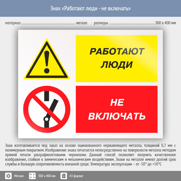 Знак «Работают люди - не включать», КЗ-83 (металл, 400х300 мм) в Кашире купить