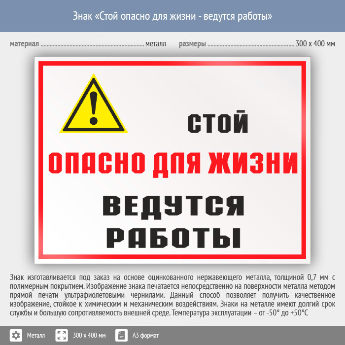 Знак «Стой опасно для жизни - ведутся работы», КЗ-86 (металл, 400х300 мм) в Кашире купить