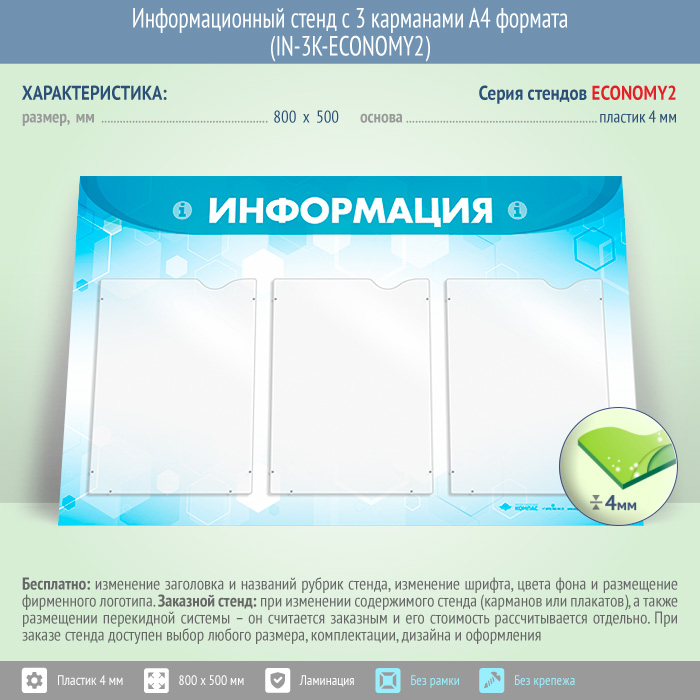 Информационный стенд с 3 карманами А4 формата (IN-3K-ECONOMY2) в Кашире купить