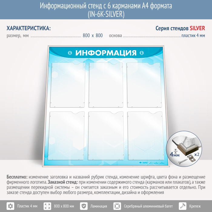 Информационный стенд с 6 карманами А4 формата (IN-6K-SILVER) в Кашире купить