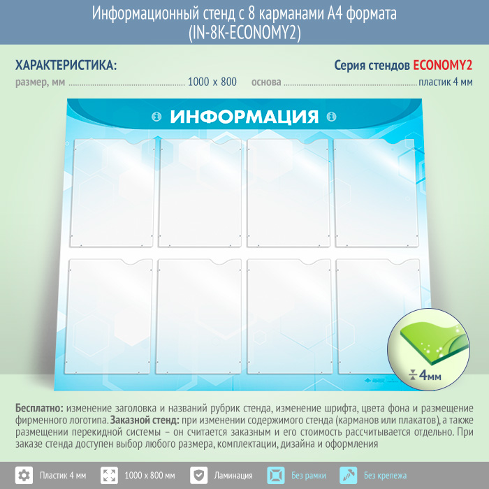 Информационный стенд с 8 карманами А4 формата (IN-8K-ECONOMY2) в Кашире купить