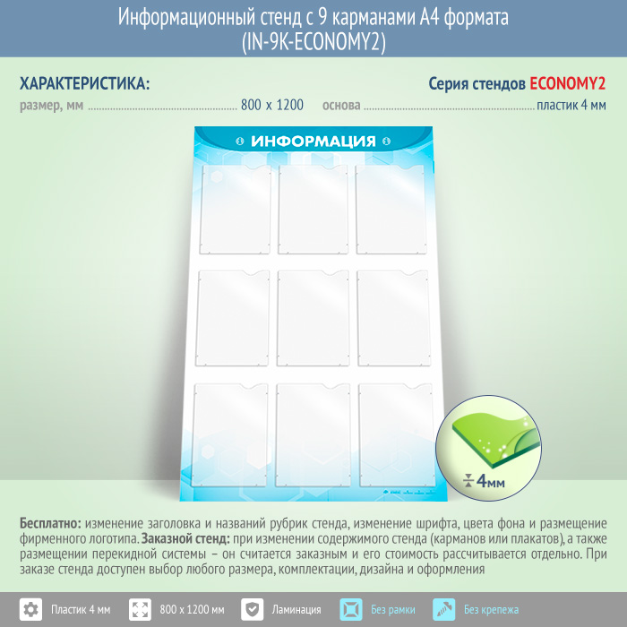 Информационный стенд с 9 карманами А4 формата (IN-9K-ECONOMY2) в Кашире купить