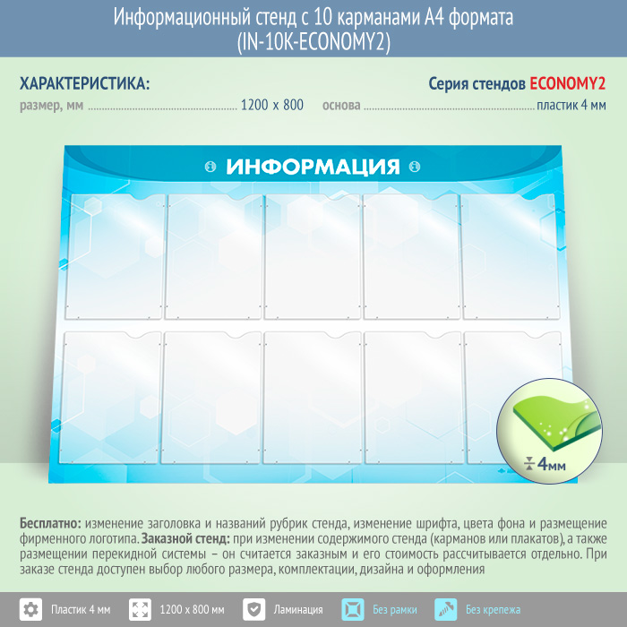 Информационный стенд с 10 карманами А4 формата (IN-10K-ECONOMY2) в Кашире купить