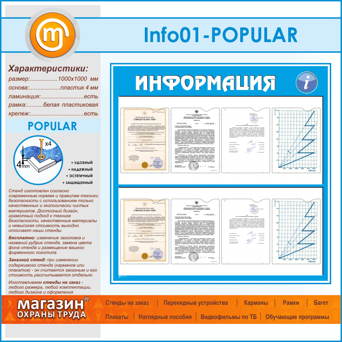 Стенд «Информация» с 8 карманами А4 формата (IN-01-POPULAR) в Кашире купить