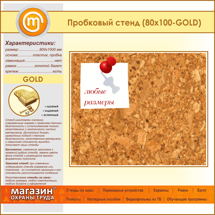 Пробковая доска, 100х80 см (IN-05-GOLD) в Кашире купить