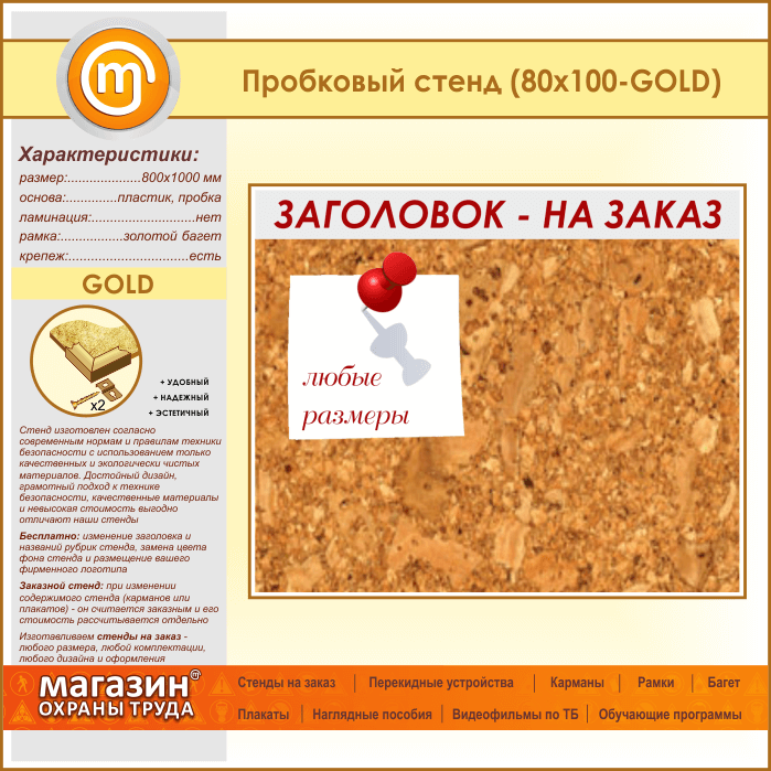 Пробковая доска с заголовком, 100х80 см (IN-06-GOLD) в Кашире купить