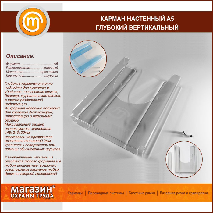 Карман настенный А5 объемный вертикальный в Кашире купить