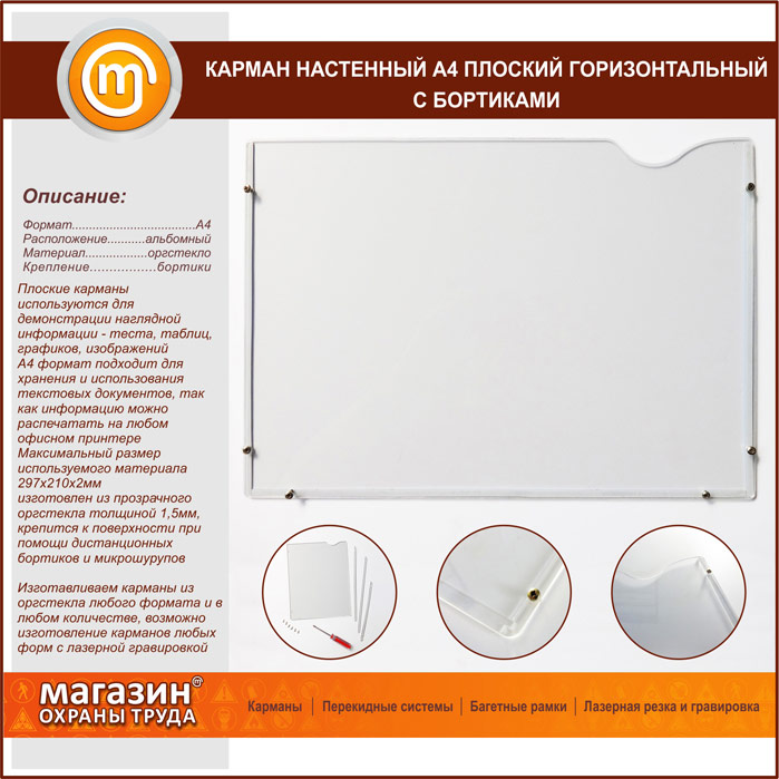 Карман настенный А4 плоский горизонтальный с бортиками в Кашире купить