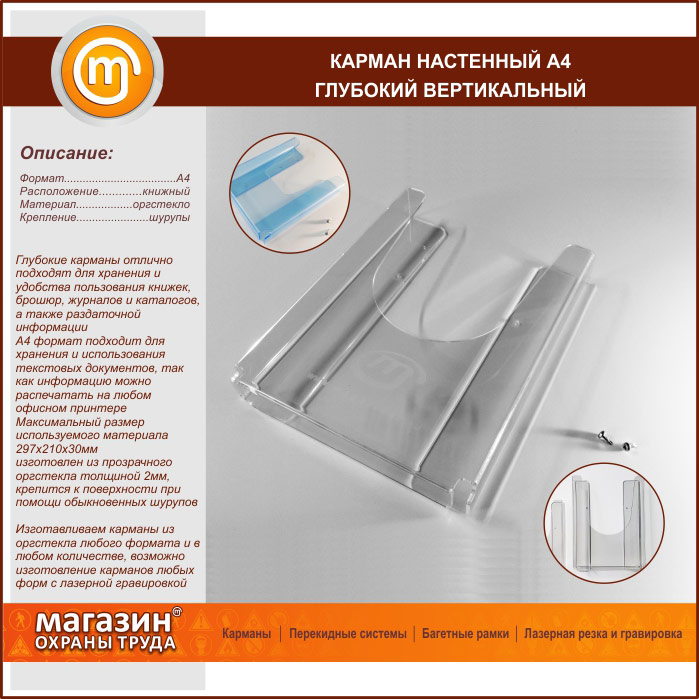 Карман настенный А4 объемный вертикальный в Кашире купить