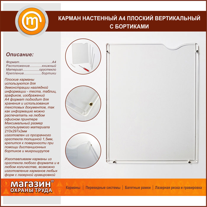 Карман настенный А4 плоский вертикальный с бортиками в Кашире купить