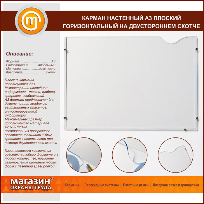 Карман настенный А3 плоский горизонтальный на двустороннем скотче в Кашире купить
