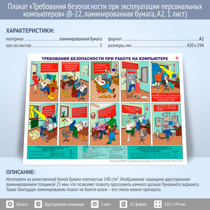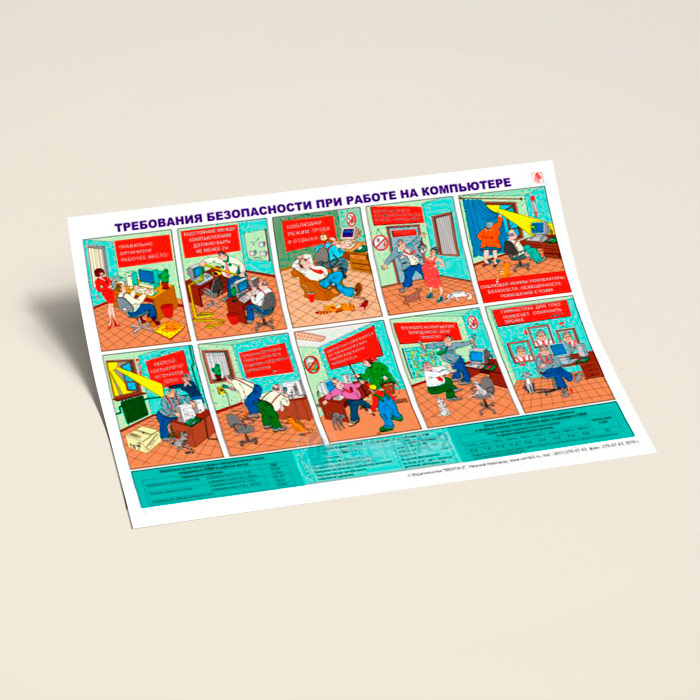 Плакат «Требования безопасности при эксплуатации персональных компьютеров» (В-22, ламинированная бумага, А2, 1 лист) в Кашире купить