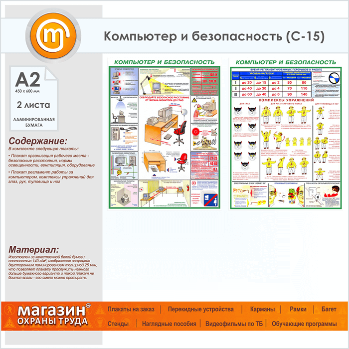 Плакаты «Компьютер и безопасность» (С-15, ламинированная бумага, А2, 2 листа) в Кашире купить