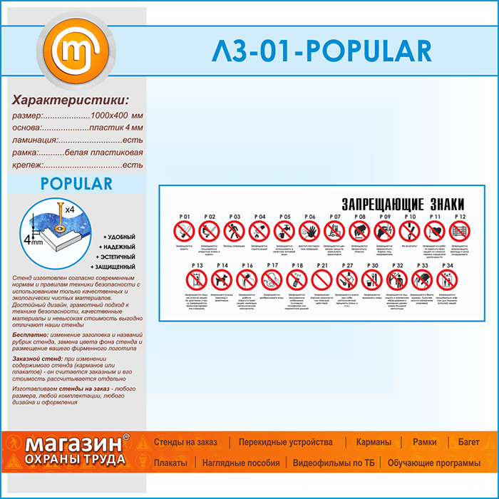 Стенд «Запрещающие знаки» (LZ-01-POPULAR) в Кашире купить