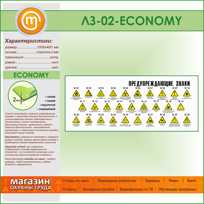 Стенд «Предупреждающие знаки» (LZ-02-ECONOMY) в Кашире купить