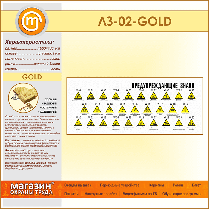 Стенд «Предупреждающие знаки» (LZ-02-GOLD) в Кашире купить