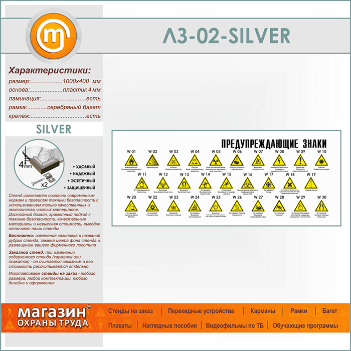 Стенд «Предупреждающие знаки» (LZ-02-SILVER) в Кашире купить