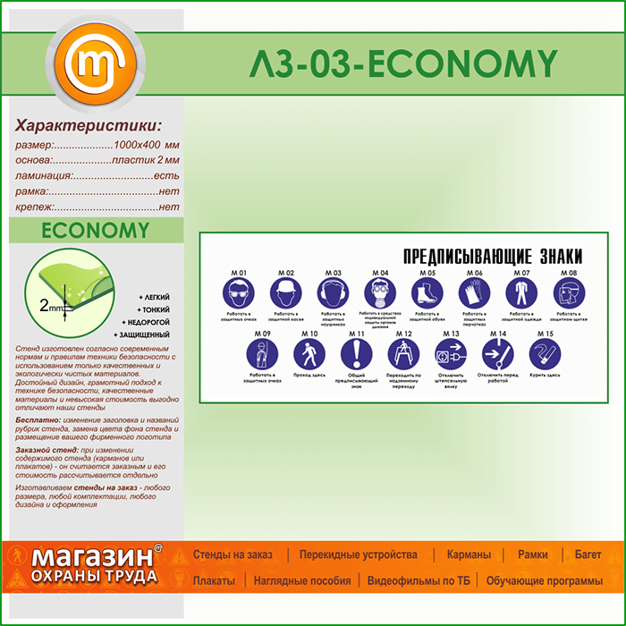 Стенд «Предписывающие знаки» (LZ-03-ECONOMY) в Кашире купить