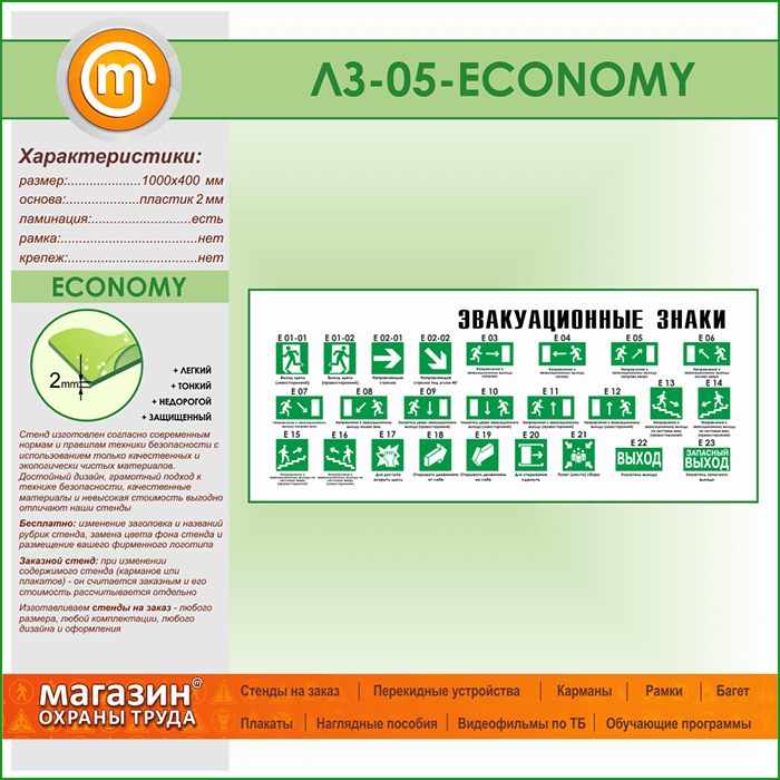 Стенд «Эвакуационные знаки» (LZ-05-ECONOMY) в Кашире купить