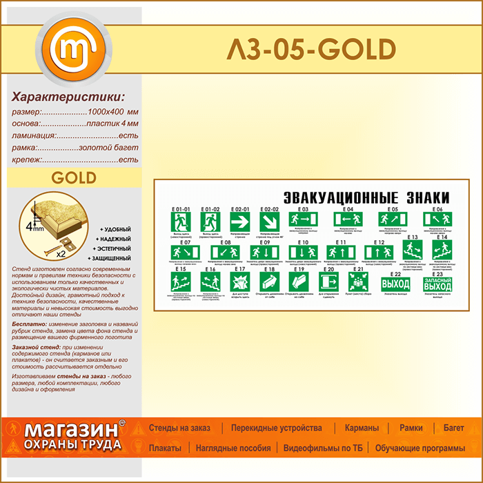 Стенд «Эвакуационные знаки» (LZ-05-GOLD) в Кашире купить