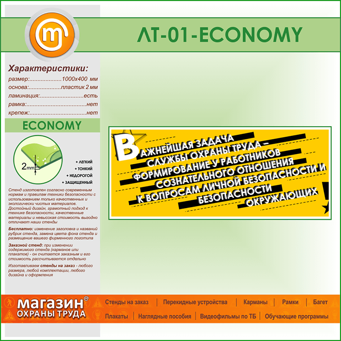 Лозунг «Важнейшая задача службы охраны труда...» (LT-01-ECONOMY) в Кашире купить