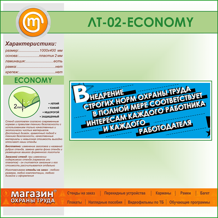 Лозунг «Внедрение строгих норм охраны труда...» (LT-02-ECONOMY) в Кашире купить