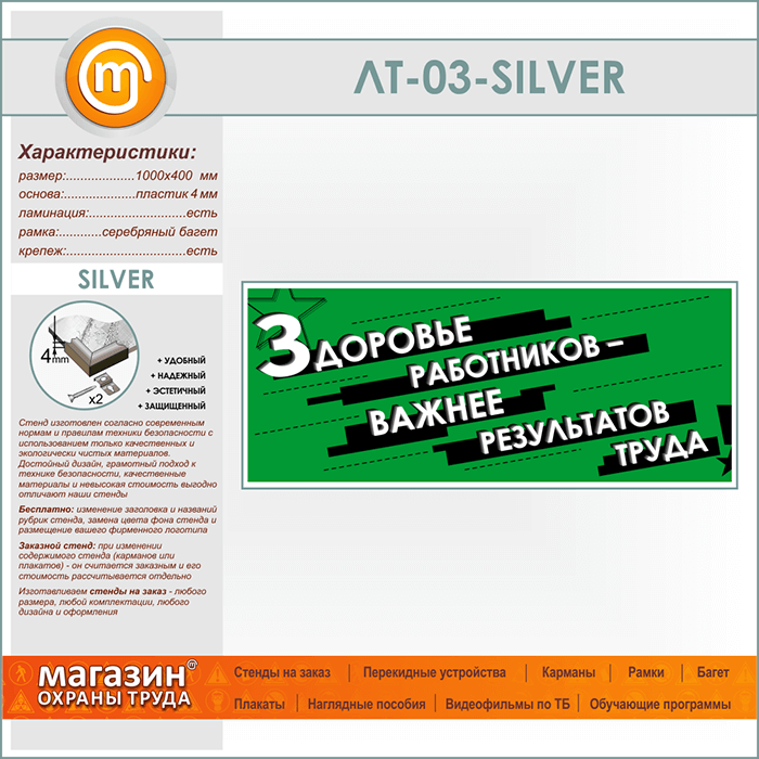 Лозунг «Здоровье работников - важнее результатов труда» (LT-03-SILVER) в Кашире купить