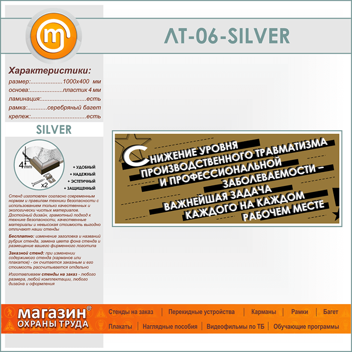 Лозунг «Снижение уровня производственного травматизма...» (LT-06-SILVER) в Кашире купить