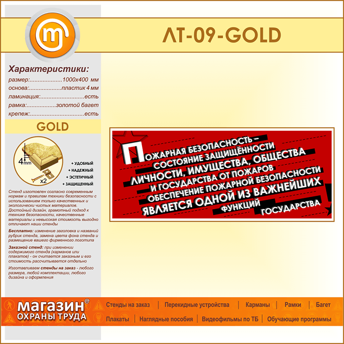 Лозунг «Пожарная безопасность - состояние защищенности...» (LT-09-GOLD) в Кашире купить