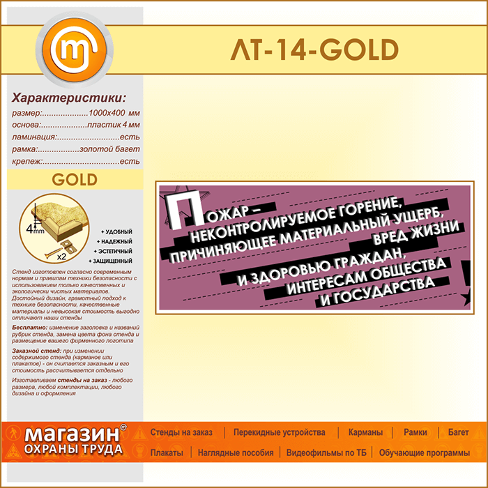 Лозунг «Пожар - неконтроллируемое горение...» (LT-14-GOLD) в Кашире купить