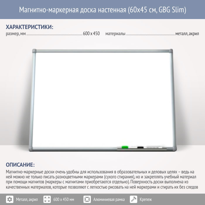 Магнитно-маркерная доска настенная (60x45 см, GBG Slim) в Кашире купить