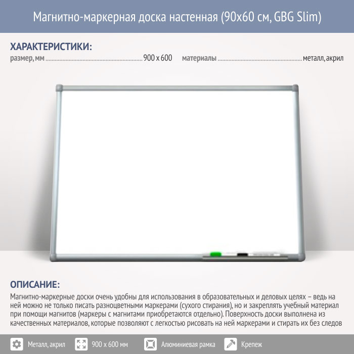 Магнитно-маркерная доска настенная (90x60 см, GBG Slim) в Кашире купить