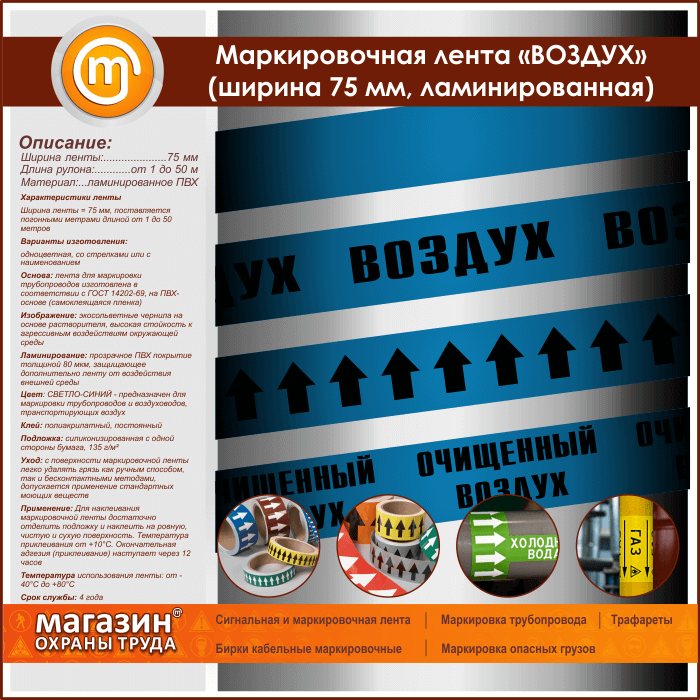 Маркировочная лента «ВОЗДУХ» (ширина 75 мм, самоклеящаяся плёнка с ламинированием) в Кашире купить