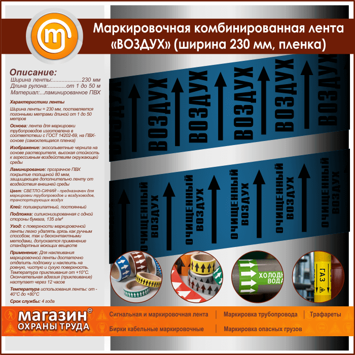 Маркировочная комбинированная лента «ВОЗДУХ» (ширина 230 мм, самоклеящаяся плёнка с ламинированием) в Кашире купить