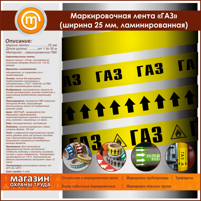 Маркировочная лента «ГАЗ» (ширина 25 мм, самоклеящаяся плёнка) в Кашире купить