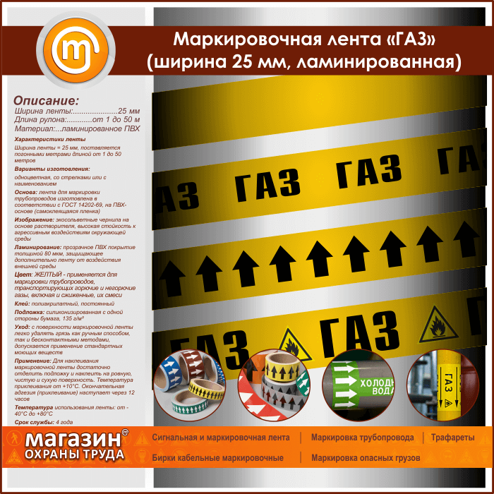 Маркировочная лента «ГАЗ» (ширина 25 мм, самоклеящаяся плёнка с ламинированием) в Кашире купить