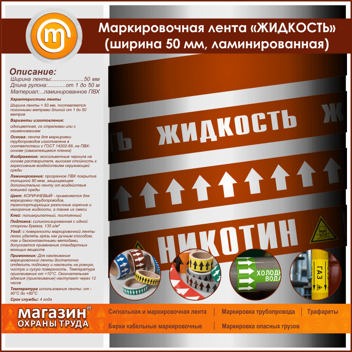 Маркировочная лента «ЖИДКОСТЬ» (ширина 50 мм, самоклеящаяся плёнка) в Кашире купить