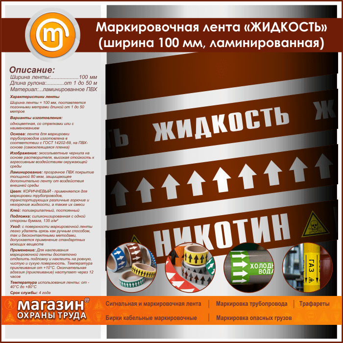 Маркировочная лента «ЖИДКОСТЬ» (ширина 100 мм, самоклеящаяся плёнка с ламинированием) в Кашире купить