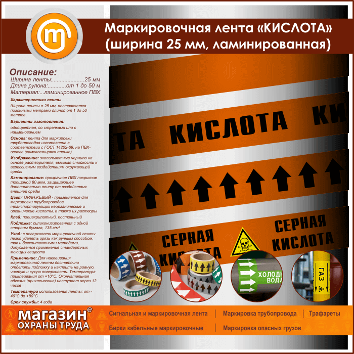 Маркировочная лента «КИСЛОТА» (ширина 25 мм, самоклеящаяся плёнка с ламинированием) в Кашире купить