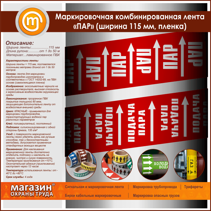Маркировочная комбинированная лента «ПАР» (ширина 115 мм, самоклеящаяся плёнка с ламинированием) в Кашире купить