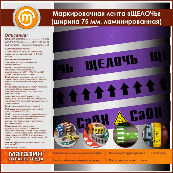 Маркировочная лента «ЩЕЛОЧЬ» (ширина 75 мм, самоклеящаяся плёнка с ламинированием) в Кашире купить