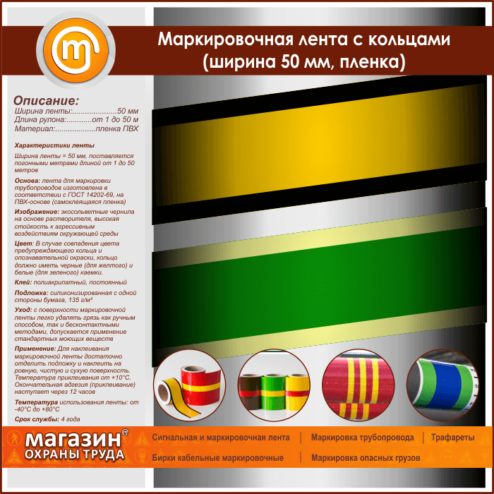 Маркировочная лента с кольцами (ширина 50 мм, самоклеящаяся плёнка) в Кашире купить