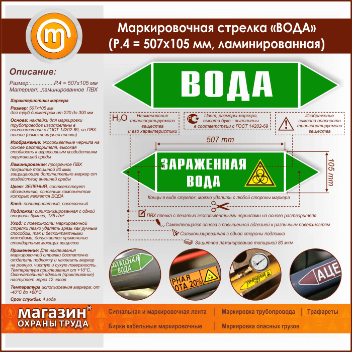 Маркировочная стрелка «ВОДА» (P.4 = 507х105 мм, самоклеящаяся плёнка с ламинированием) в Кашире купить