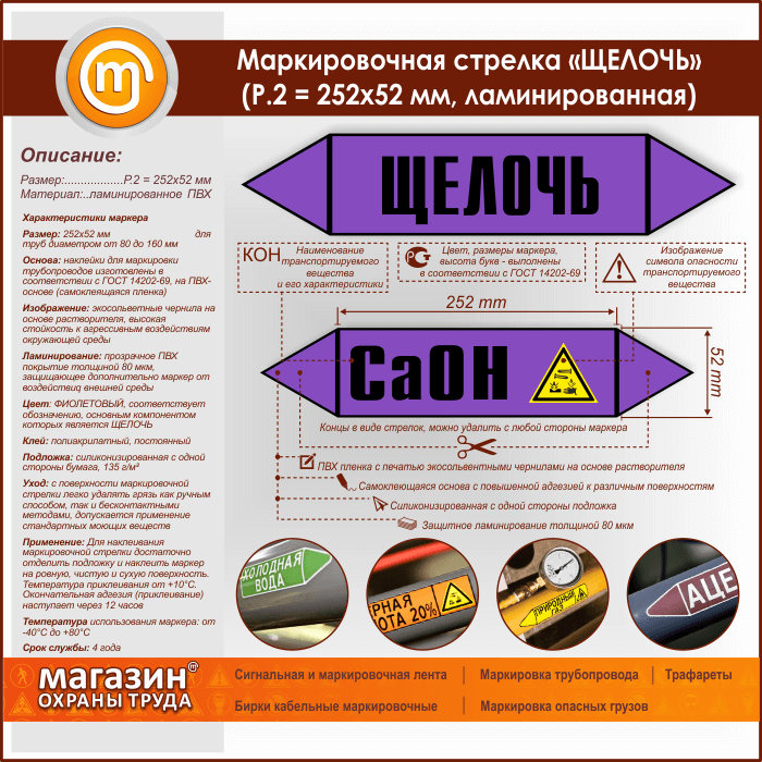 Маркировочная стрелка «ЩЕЛОЧЬ» (P.2 = 252х52 мм, самоклеящаяся плёнка с ламинированием) в Кашире купить