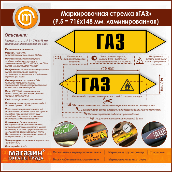 Маркировочная стрелка «ГАЗ» (P.5 = 716х148 мм, самоклеящаяся плёнка с ламинированием) в Кашире купить