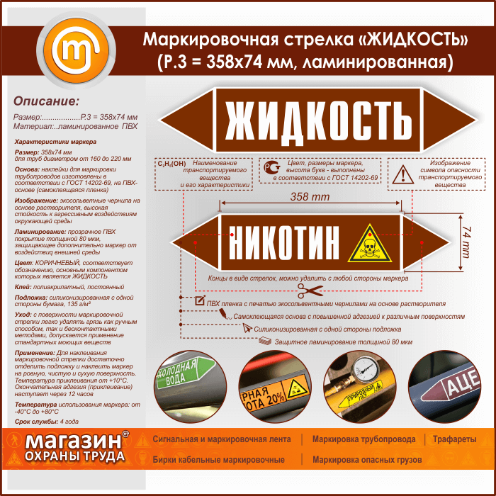Маркировочная стрелка «ЖИДКОСТЬ» (P.3 = 358х74 мм, самоклеящаяся плёнка с ламинированием) в Кашире купить