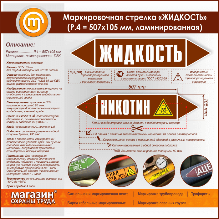 Маркировочная стрелка «ЖИДКОСТЬ»(P.4 = 507х105 мм, самоклеящаяся плёнка с ламинированием) в Кашире купить