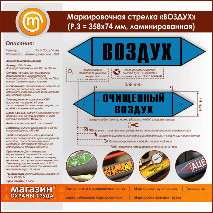 Маркировочная стрелка «ВОЗДУХ» (P.3 = 358х74 мм, самоклеящаяся плёнка с ламинированием) в Кашире купить