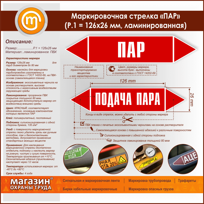 Маркировочная стрелка «ПАР» (Р.1 = 126х26 мм, самоклеящаяся плёнка с ламинированием) в Кашире купить