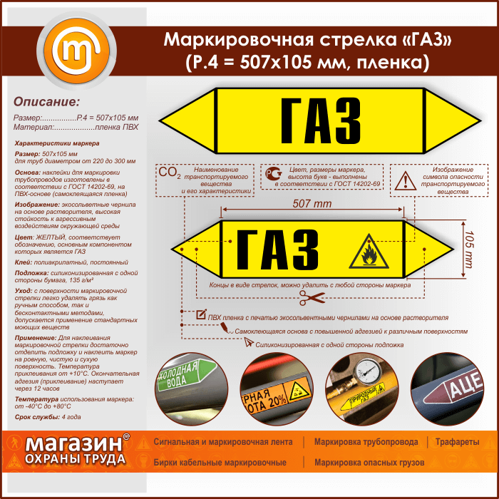 Маркировочная стрелка «ГАЗ» (P.4 = 507х105 мм, самоклеящаяся плёнка) в Кашире купить